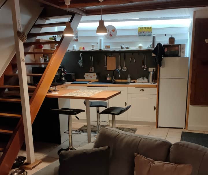 Për një qëndrim romantik, ja një shtëpi e vogël e rinovuar me shije kohët e fundit...Do të jetosh në zemër të një fshati të gjallë, në një habitat tipik të punonjësve të fermave të vitit të kaluar. Muret e trasha prej guri, çatia e lauzes, cantou tradicionale ( oxhak)...gjithçka është aty...me të gjitha komoditetet e sotme sigurisht 😁
