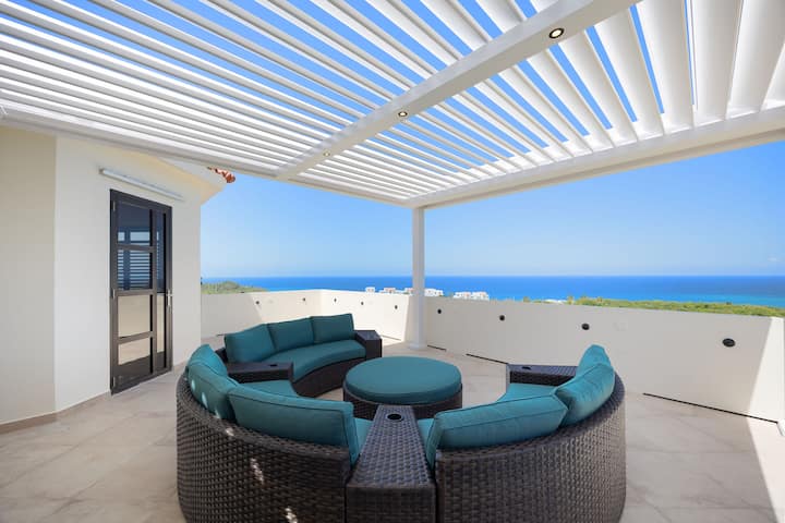 Vilë me pamje nga deti, pishinë dhe tarracë në çati