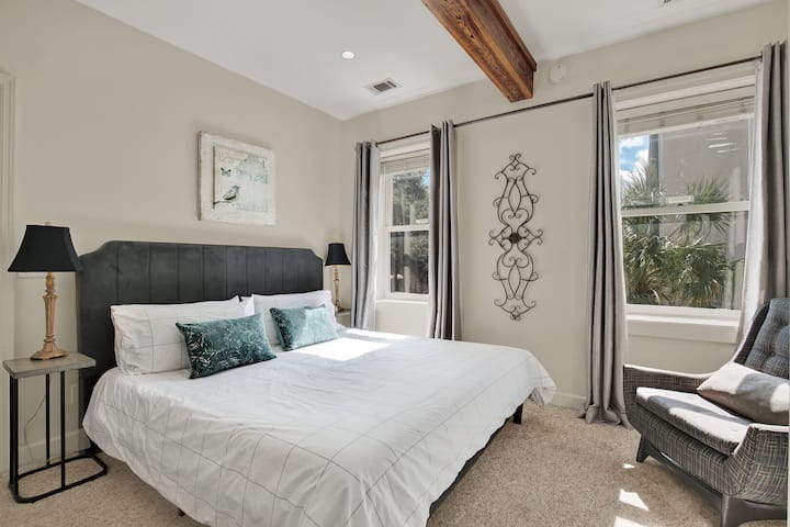 Pas një dite panoramike, pazari ose ngrënieje në një nga restorantet e njohura të Savannah, shko në dy dhomat luksoze të loftit, secila e mobiluar me një krevat dopio "king-size" të veshur me shtroja premium. Të dyja dhomat e gjumit kanë dekor bashkëkohor, banjë të kompletuar në suitë dhe një ambient të qetë për të siguruar një gjumë të qetë gjatë natës. Secila nga dy banjat e plota ofron kënaqësi si spa me pajisje moderne, gjëra të hijshme dhe dush me pllaka. Hapësirë shtesë për fjetje e disponueshme me dyshek me ajër të madhësisë "queen".