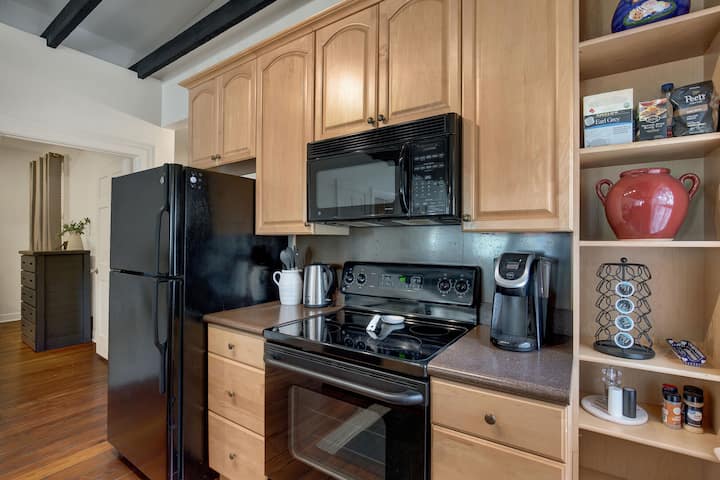 Të qëndrosh në këtë loft elegant do të thotë të zhytesh në thelbin e vërtetë të Savannah. Zgjohu nga pamjet dhe tingujt e një qyteti të gjallë, shijo një shëtitje në mëngjes nëpër rrethin historik dhe zbulo sharmin e lisave të mbushur me myshk dhe sheshe piktoreske që e bëjnë Savannah kaq unike. Pavarësisht nëse je këtu për të eksploruar historinë, për t 'u kënaqur me kuzhinën e shijshme apo thjesht për t' u çlodhur me stil, ky loft është baza ideale për përvojën tënde të pushimeve me qira në Savana.