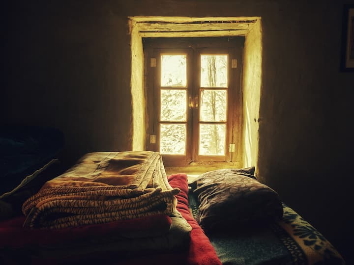 3. Ambient i rehatshëm tradicional i ndenjjes në stilin Lahauli me ngrohje Bukhari nga ora 18:30 e më pas (nga mesi i nëntorit deri në mes të marsit)