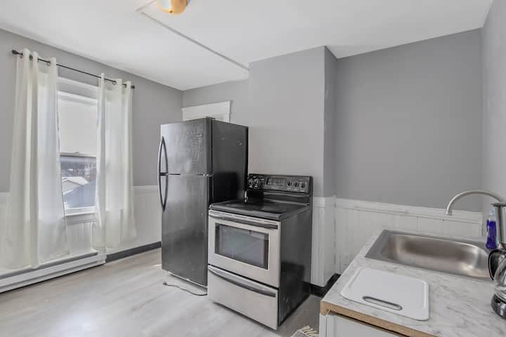 Hyr në këtë apartament të rehatshëm me 2 dhoma gjumi, me 1 banjë, që ndodhet në katin e tretë të një banese të qetë shumëfamiljare. Ideale për familje ose grupe, ku mund të flenë deri në 6 persona me 2 krevate dopio dhe 2 krevate dopio. Shijo një kuzhinë të pajisur plotësisht, shërbime moderne dhe një atmosferë çlodhëse. Vetëm disa minuta nga Universiteti i Sirakuzës, Destiny USA, Kopshti Zoologjik Rosamond Gifford dhe Muzeu i Kanalit Erie, do të kesh qasje të lehtë në atraksionet kryesore. E përkryer për punë, kohë të lirë ose vizita familjare.