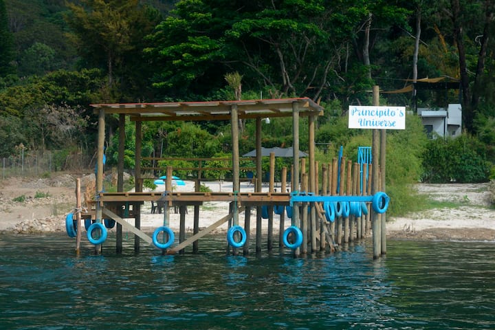 Elephant and Boa · Lago Premium është një vilë komode dhe elegante me një tarracë dhe zona pushimi që të ftojnë të shijosh peizazhin. E vendosur brenda Principitos Universe, ajo ofron qasje në një xhakuzi, vatër zjarri, temazcal, plazh privat dhe bankinë ekskluzive. Plotësisht e sheshtë dhe e arritshme, kjo shtëpi kombinon magjinë e Princit të Vogël me rehatinë premium, ideale për ata që kërkojnë qetësi përballë Liqenit Atitlán.