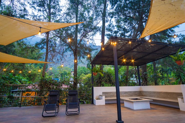 Dhe nëse ngjitesh në çati, do të zbulosh një strehë të ngritur: një hapësirë të hapur drejt qiellit me një gropë zjarri në qendër, fantastike për të parë yjet, për të ndarë histori ose thjesht për të dëgjuar liqenin aty pranë që psherëtin natën.