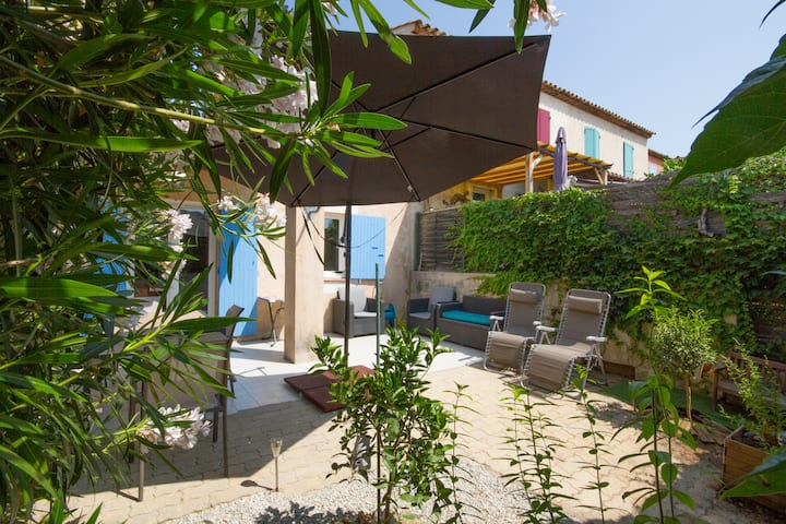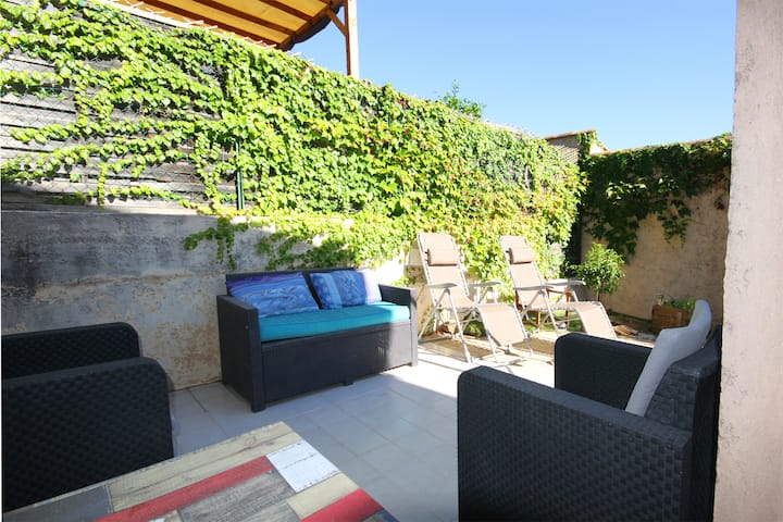 Shtëpi me tarracë në kopsht me pishinë