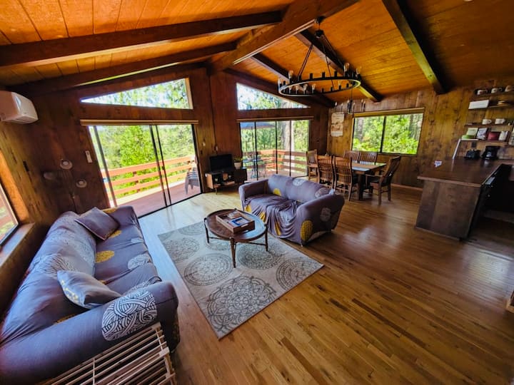 Kabina e Upper Skyridge El Capitan është një vendpushim i rehatshëm i vendosur në kreshtë me lartësi të lartë midis pishave me pamje nga maja e malit dhe liqenit. Ndodhet në një rrugë shumë të qetë brenda liqenit PML me qasje në një liqen me 3 plazhe dhe një marinë me sporte ujore me qira, një restorant, shtigje në natyrë dhe më shumë! Kjo është një pushim i përkryer për një pushim familjar, një pushim romantik, duke eksploruar Parkun Kombëtar Yosemite, vetëm 25 milje larg!