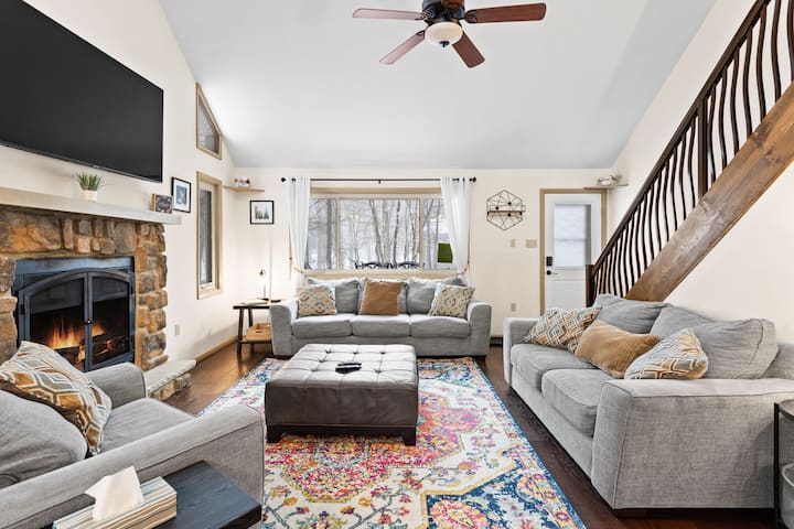 Kjo shtëpi ofron një mjedis të qetë malor me shumë hapësirë dhe aktivitete për të gjitha moshat, vetëm një distancë e shkurtër me makinë nga atraksionet e njohura të Pocono, ecje, ski dhe më shumë.