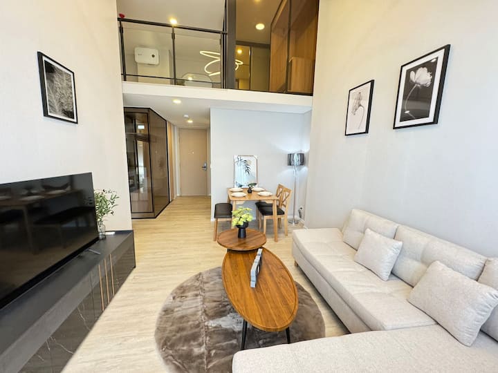 E RE/Rama9/Apartament luksoz/2 dhoma gjumi 2 banja/Suitë e madhe dupleks/Pishinë e pafundme/Palestër/Restorant i famshëm në internet/I pajisur plotësisht/C11F