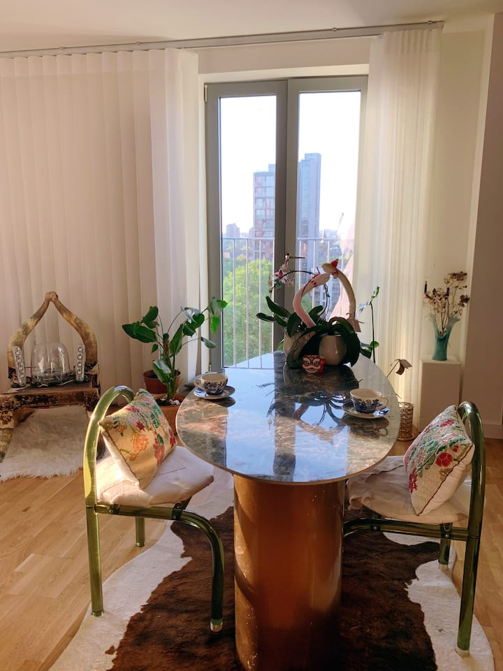 Pres me padurim të të uroj mirëseardhjen në një hapësirë të qetë dhe elegante që duket si një shtëpi e vërtetë në Londër — me një pamje që është e vështirë të harrohet