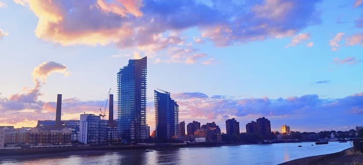 Hyr në një apartament të nivelit të lartë me dy dhoma gjumi në një rezidencë të sapozhvilluar buzë lumit. Dhoma jote private e vizitorëve është e vetmja në dispozicion të vizitorëve, duke garantuar rehati dhe privatësi, dhe ofron një derë franceze nga dyshemeja deri në tavan me një ballkon të vogël me pamje nga lumi Thames.