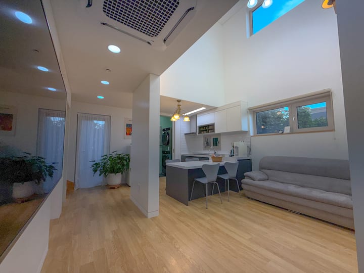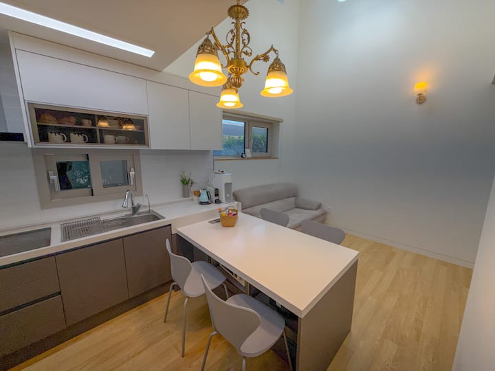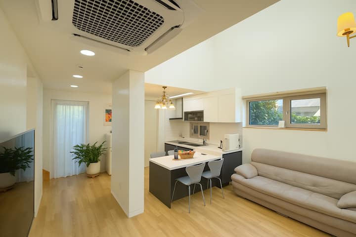 Kjo është një vilë private me dy kate, e përshtatshme për fëmijë, e vendosur në Hado-ri të Jeju-së,