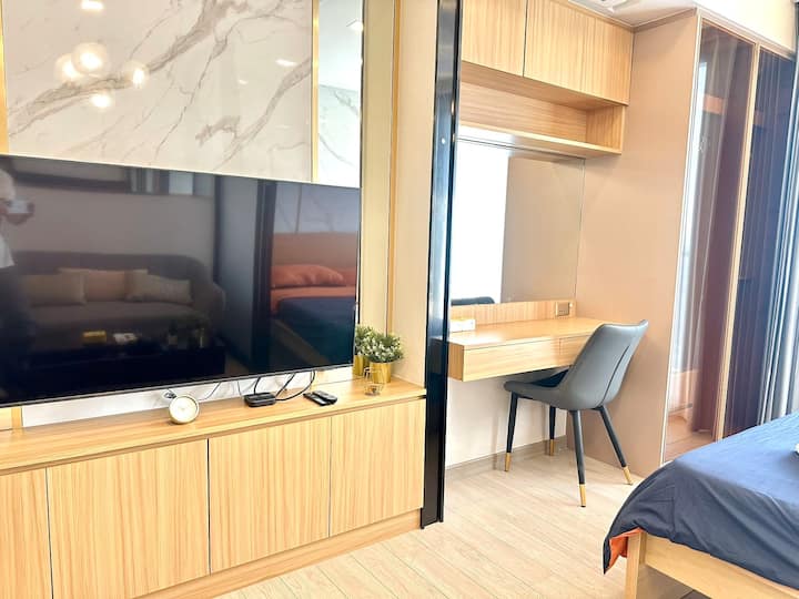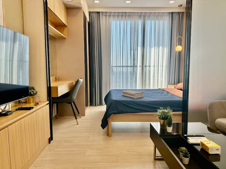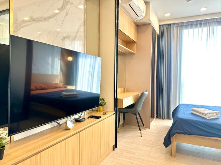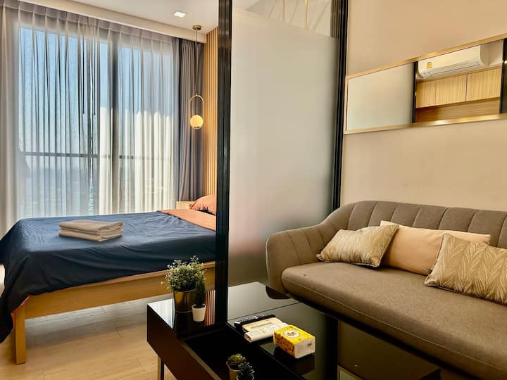 Rama9/Light Luxury High-end Apartment/Free Airport Pick-up/Sky Pool/Gym/Close to MRT/Fully Equipped/Train Night Market B38