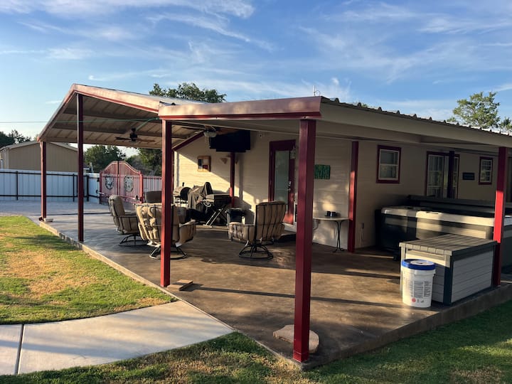 - Shtëpi pushimesh me ndenjëse në ambientin e jashtëm në Brazos River
