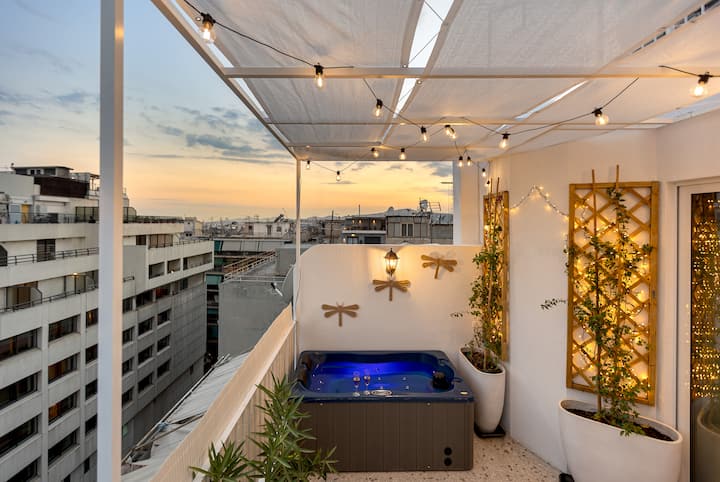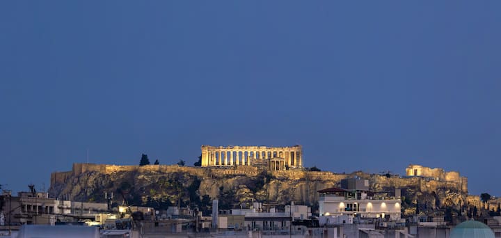 Xhakuzi privat në tarracë me pamje nga Akropoli