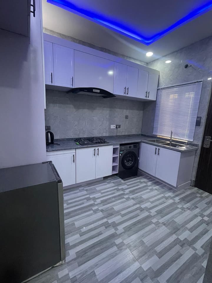 Shijo dritën e qëndrueshme, WiFi me shpejtësi të lartë dhe mobilje me shije në këtë apartament komod dhe modern me 3 dhoma gjumi që ndodhet në River Park Estate, Abuja, një zonë e sigurt dhe e qetë. E projektuar për rehati dhe komoditet, banesa ka ashensor, parkim privat dhe qasje në një pishinë aty pranë. Në një vend ideal, 7 minuta nga Dunamis Glory Dome, 15 minuta nga aeroporti dhe 10 minuta nga Shoprite. E përkryer për familjet që kërkojnë një qëndrim të qetë dhe të mirë-lidhur në Abuja.