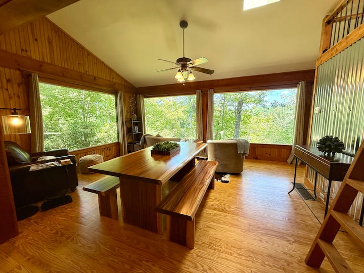Arratisu në kabinën tonë të përshtatshme për kafshë shtëpiake 2BR/2BA Lake Lure! Ambient i qetë me pyje me privatësi dhe bukuri malore, përmban një vaskë me hidromasazh, oxhak me gaz dhe dritare të MËDHA që shfaqin peizazhin mahnitës!