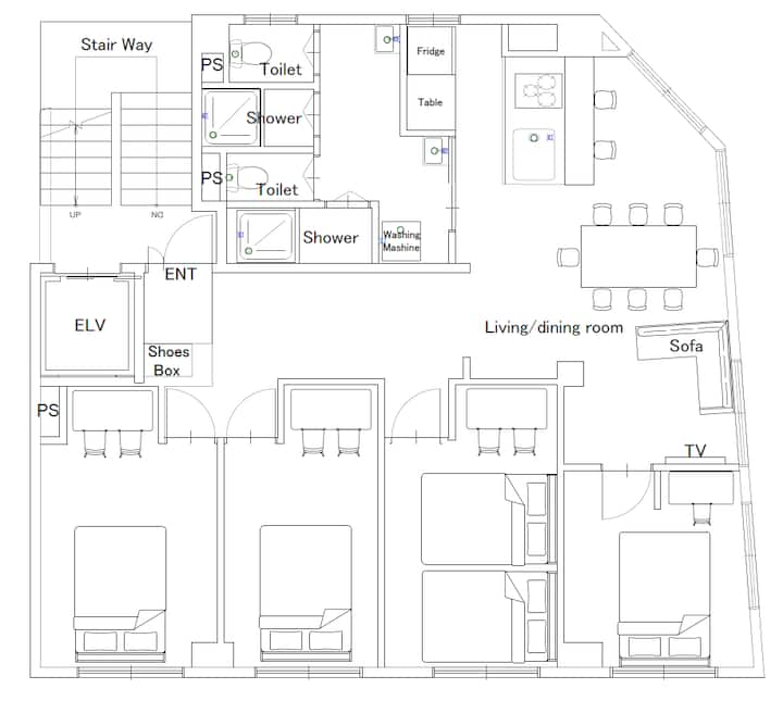 Zona K-10 Ueno Asakusa Kuramae | Vendndodhje e shkëlqyer 1 minutë më këmbë nga stacioni | Dhomë e madhe | 10 persona 100 m² 4LDK