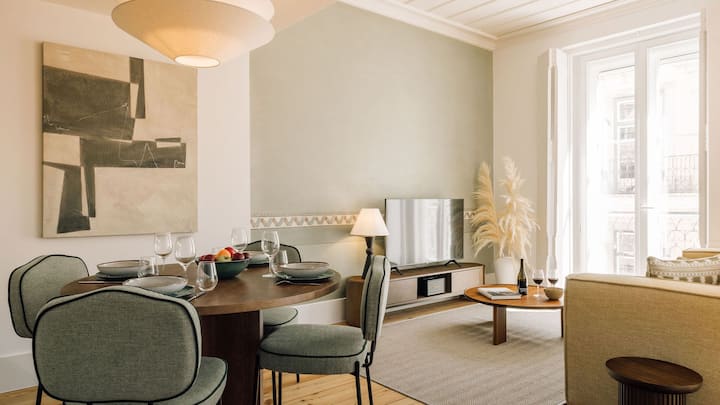 Ambienti i përkryer për t 'u çlodhur dhe për t' u çlodhur - i kompletuar me një divan krevat të rehatshëm, orendi elegante dhe vepra arti të prodhuara në vend. Zbulo listat tona të luajtjes për të vendosur atmosferën ndërsa relaksohesh në një atmosferë të qetë me ndriçim të rregullueshëm dhe të zbehtë. Tavolina e ngrënies, me deri në katër persona, është e përkryer për të shijuar një vakt së bashku para se të nisesh dhe të zbulosh të gjitha kënaqësitë e Lisbonës. Qëndro i lidhur me WiFi falas me fibra optike me shpejtësi të lartë.