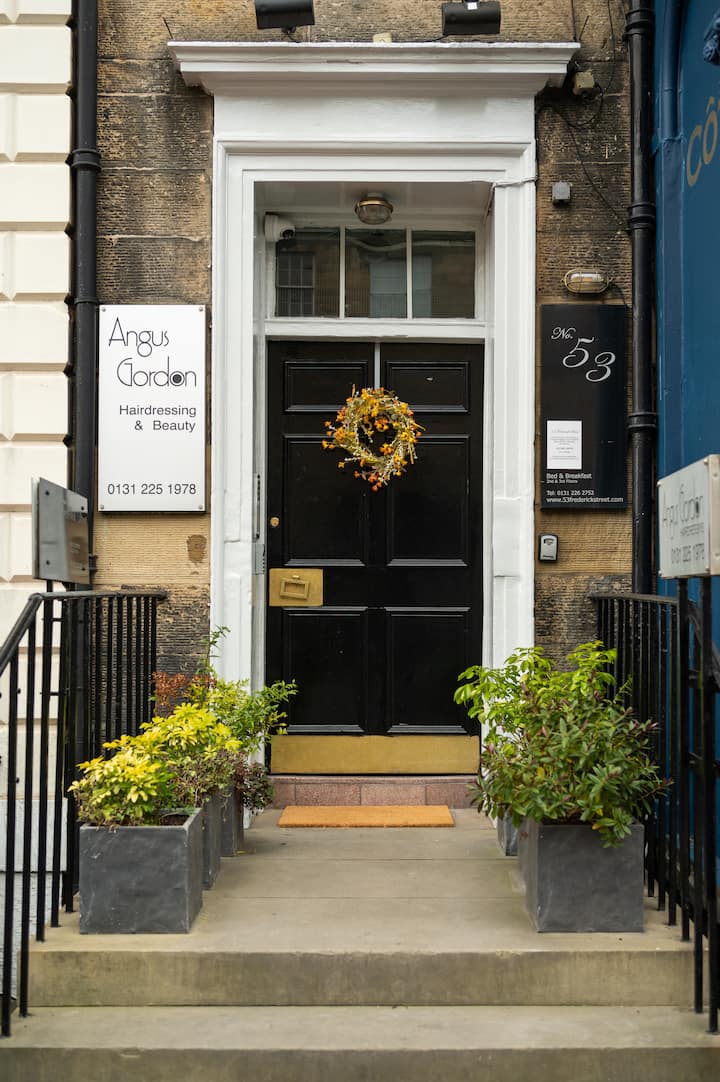 Kjo dhomë private ndodhet brenda shtëpisë sonë të bukur të miqve në 53 Frederick Street, duke të vendosur pikërisht në zemër të qytetit të ri të Edinburgut, një vend i trashëgimisë botërore të UNESCO-s i famshëm për arkitekturën e tij elegante gjeorgjiane dhe gjysmëhënat e gjera.