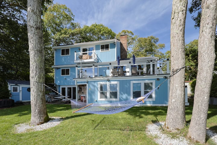 Kjo shtëpi e gjerë me 6 dhoma gjumi buzë liqenit ofron gjithçka që të duhet për një pushim të qetë dhe argëtues në Cape Cod. Plazh privat, një trampolinë uji, kajakë, vaskë me hidromasazh, sauna, dhomë me avull, oxhaqe.