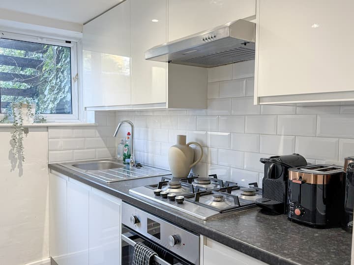 Qëndro në këtë apartament elegant me 1 dhomë gjumi në Finsbury Park me një mini kopsht privat, ideal për pushime në qytet ose ditë ndeshjesh në stadiumin Emirates (shtëpia e Arsenalit). Ec deri te stacioni Finsbury Park ose Manor House për lidhje të shpejta nëpër Londër. Çlodhu në Clissold Park ose përgjatë Parkland Walk, pastaj eksploro Highbury, Stroud Green, Stoke Newington, Holloway dhe Islington për kafene dhe restorante. Camden është gjithashtu brenda mundësive të lehta, duke e bërë këtë një bazë të mirë-lidhur në North London.