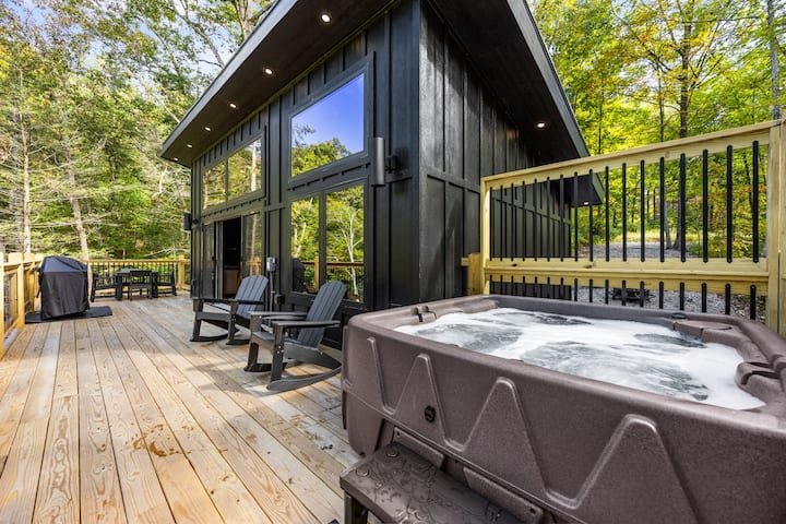 Kabinë luksoze për çifte me vaskë të nxehtë dhe vatër zjarri!