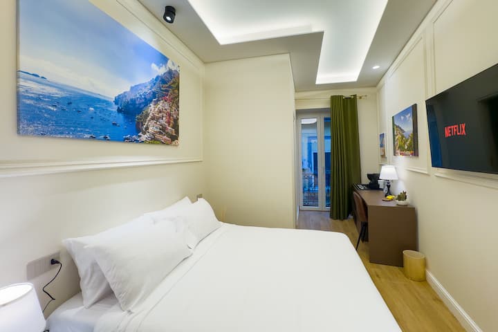 Drita natyrale depërton nga dyert e ballkonit privat, ku do të gjesh një hapësirë të vogël të jashtme të përkryer për t'u çlodhur, për të shijuar një kafe në mëngjes ose për të parë jetën e lagjes.