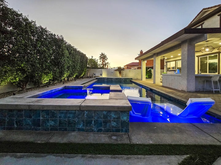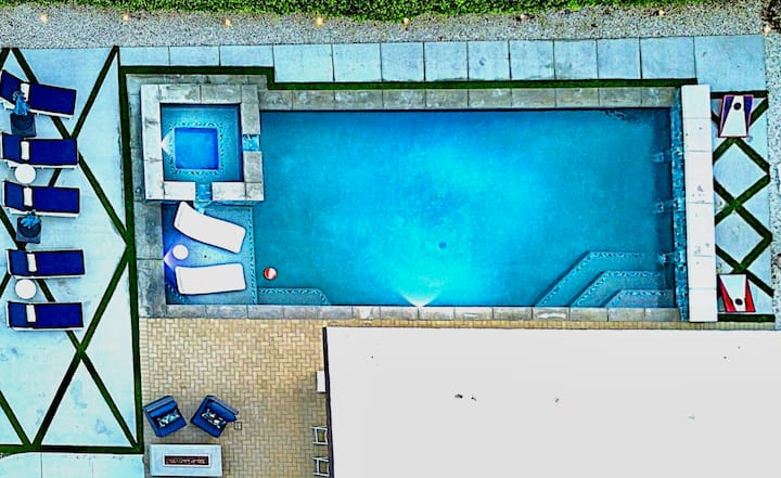 ★★ HAPËSIRË E JASHTME ★★Kjo oazë e jashtme si resort është pjesa më e mirë e pronës. Ulu në barin e bukur dhe shijo një koktej freskues ndërsa shikon shfaqjen tënde të preferuar në një televizor inteligjent 4K 75". Argëtohu nën diell rreth pishinës blu të kristaltë, të kompletuar me shezlongë, raft për diell dhe një vaskë me hidromasazh. Shijo një koktej në pishinë, piq një vakt të shkëlqyer në skarë ose çlodhu pranë vatrës së zjarrit për një bisedë të mirë. Gati për pak ushtrime... kënaqu me pak basketboll uji. Kjo hapësirë e jashtme është vendi i përkryer për të krijuar kujtime që zgjasin!