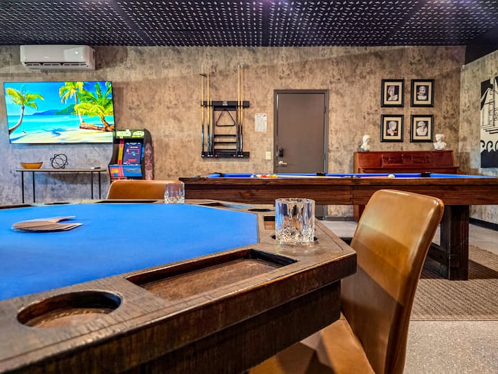 ★★ DHOMË LOJËRASH ★★Garazhi është shndërruar në një dhomë lojërash epike me klimë të kontrolluar, e cila ofron orë të tëra argëtimi të pafund për njerëz të të gjitha moshave, me një bar, piano, tavolinë bilardoje, tavolinë pokeri, pingpong, lojë klasike me shumë lojëra, televizor inteligjent HD 75", lojëra tavoline, piano dhe më shumë. Përgatitu për një garë miqësore dhe krijimtari.