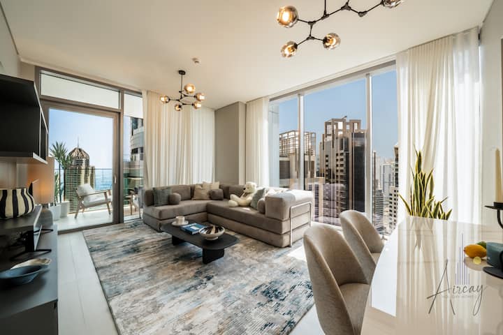 Kemi kënaqësinë të të presim në apartamentin tonë të projektuar bukur me 2 dhoma gjumi në katin e 32-të të Liv Marina, një pushim modern në zemër të Dubai Marina. Shijo ambiente të brendshme elegante, mobilie premium dhe qasje në shërbime të klasit botëror, të gjitha vetëm disa hapa nga Marina Walk, JBR Beach dhe restorantet më të mira.