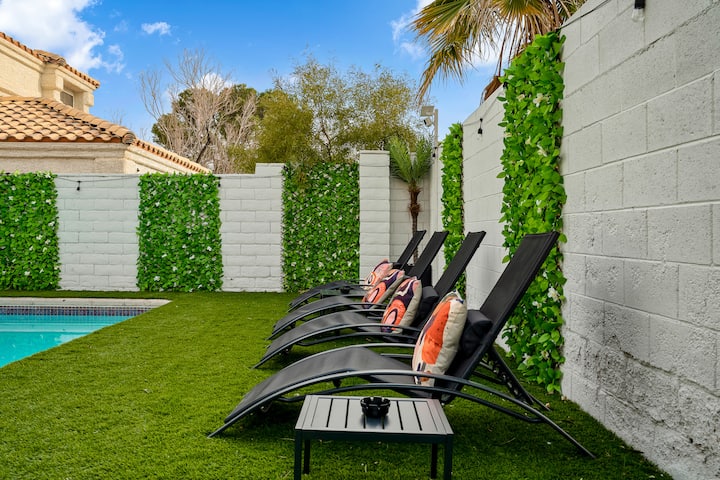 Gati për pushimet e përkryera në Las Vegas me familjen dhe miqtë? Kjo vilë luksoze dhe e gjerë është e mbushur me rehati, argëtim dhe hapësirë për të gjithë, lojëra arkade, tavolinë pishine, dy hapësira ngrënieje, televizorë inteligjentë në çdo dhomë gjumi, krevate me sfungjer memorik dhe një pishinë private vezulluese. Grupi yt do të rehatohet aq mirë... sa mund të mos duash të largohesh kurrë 🎯