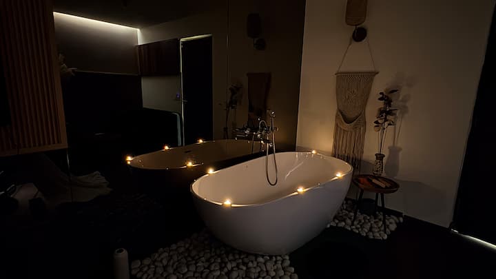 Një banjë private me xhakuzi, me qirinj dhe qetësi