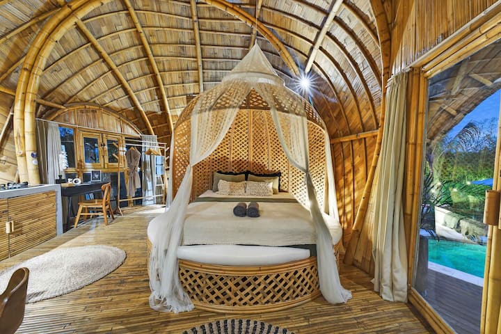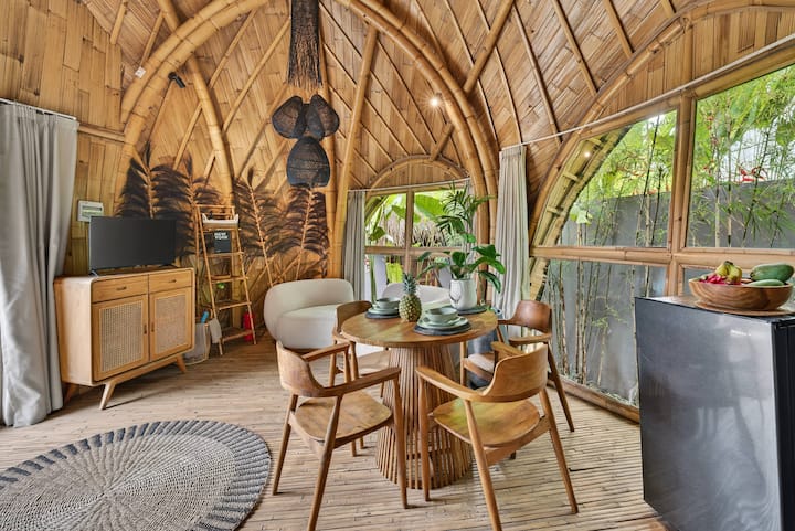 🏊 Hapësirë e jashtme dhe pishinë: Dil jashtë dhe shijo oazën tënde private tropikale. Kjo vilë ka një pishinë private, e përkryer për zhytje freskuese dhe pasdite të qeta. Planimetria e jashtme plotëson estetikën e bambusë së vilës, me gjelbërimin përreth që rrit atmosferën e saj qetësuese. Dielli i mëngjesit, një mjedis i qetë dhe një fllad natyror krijojnë një hapësirë të qetë për t'u çlodhur. Kompleksi ofron një atmosferë të qetë dhe freskuese dhe qëndrimi yt përfshin mëngjesin e përditshëm, me një mëngjes lundrues të disponueshëm sipas kërkesës.