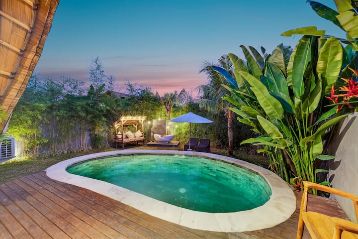 Mirë se vini në Noon Villa 5, një vilë e qetë dhe elegante me 1 dhomë gjumi, e ndërtuar me arkitekturë të frymëzuar nga bambuja, miqësore me mjedisin, që përzihet natyrshëm në peizazhin tropikal të Balit. E vendosur në një zonë të qetë të Pererenan, vila është e rrethuar nga gjelbërimi dhe puthet nga drita e butë e mëngjesit, duke ofruar një ekuilibër të rrallë të qetësisë, rehatisë moderne dhe aksesit të lehtë në qendër të Canggu, vetëm 5–10 minuta larg. Noon Villa 5 të sjell një përzierje të paharrueshme të natyrës, dizajnit dhe rehatisë.