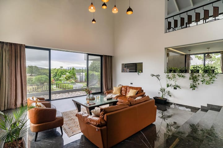 Rrethuar me gjelbërim të pastër dhe të harlisur. Vila Rainfield në Nashik është një vend i shenjtë ftues për të shijuar qetësinë e Nashik. Që nga fillimi, struktura gjeometrike e ngjashme me xhamat formojnë një botë të bukur të mbushur me ngrohtësi dhe luks. Brenda këtij qëndrimi me 3 dhoma gjumi, dritaret nga dyshemeja në tavan ofrojnë pamje panoramike të maleve. Duke të përshëndetur me një shatërvan të brendshëm, hapësirat e banimit me ndriçimin e tij të butë në mëngjeset e rehatshme.
