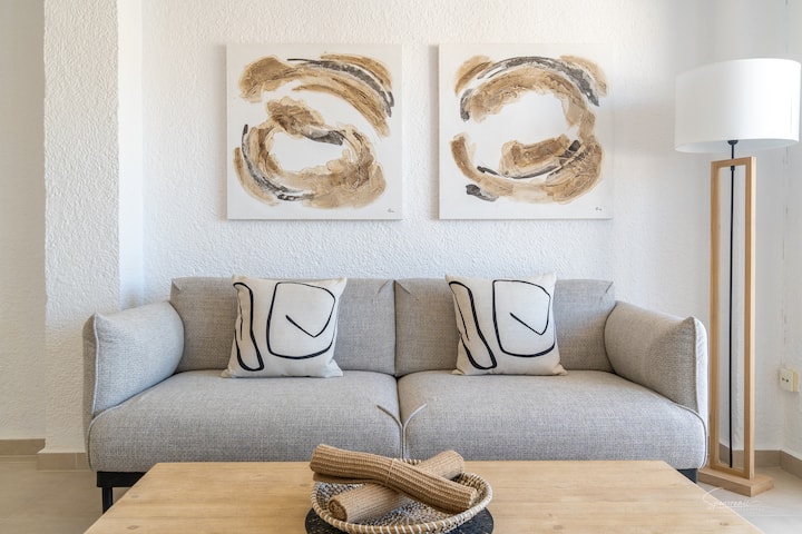 Apartament modern me një dhomë gjumi në zemër të Jávea, vetëm disa minuta më këmbë nga Plazhi Arenal, kafenetë, restorantet dhe shërbimet e gjalla lokale. Shijo një ballkon privat me pamje të bukura malore, ajër të kondicionuar, televizor inteligjent dhe WiFi të shpejtë. Ndërtesa ka një ashensor për qasje të lehtë. Bazë e përkryer për çiftet ose udhëtarët e vetëm që kërkojnë të relaksohen, të eksplorojnë dhe të përjetojnë stilin e jetesës bregdetare të Jávea.