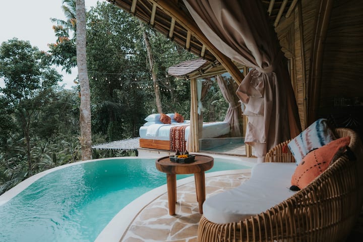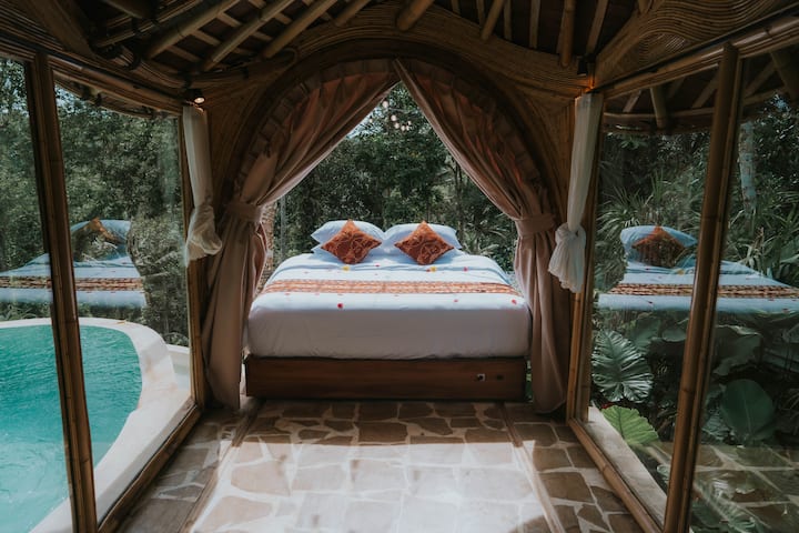 Vilë bambuje me 2 dhoma gjumi, pishinë private dhe hamak
