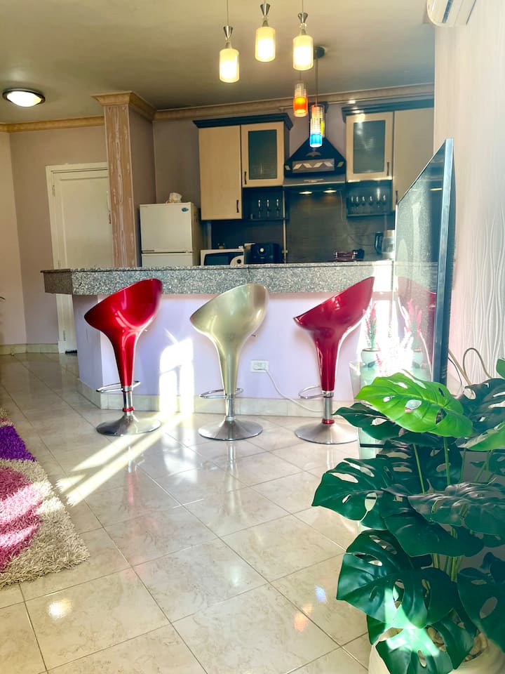 Apartament elegant dhe komod me pamje nga gjelbërimi në El Rehab