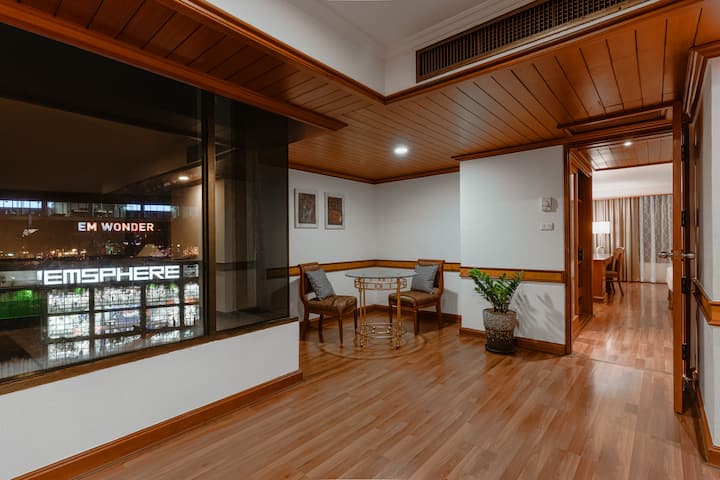 Shijo një qëndrim të rehatshëm në këtë suitë ekzekutive në një hotel në zemër të Phrom Phong, vetëm 7 minuta më këmbë nga BTS Phrom Phong. I vendosur në Sukhumvit Soi 33, hoteli është afër EM District (Emporium, EmQuartier, Emsphere) dhe Benchasiri Park. Vizitorët mund të shijojnë qasjen në pishinë dhe palestër, me shumë restorante, kafene dhe dyqane brenda një distance të shkurtër në këmbë. Një zgjedhje ideale për qëndrime biznesi dhe argëtimi në qendër të Bangkokut.