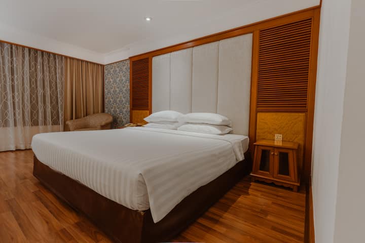 Vizitorët që qëndrojnë në suitën ekzekutive do të kenë qasje të plotë në dhomën dhe banjën e tyre private, duke përfshirë një zonë divani/këndi salloni. Dhoma është e gjerë, rreth 65 m2 dhe e mobiluar mirë, me hapësirë të mjaftueshme për sendet e tua.