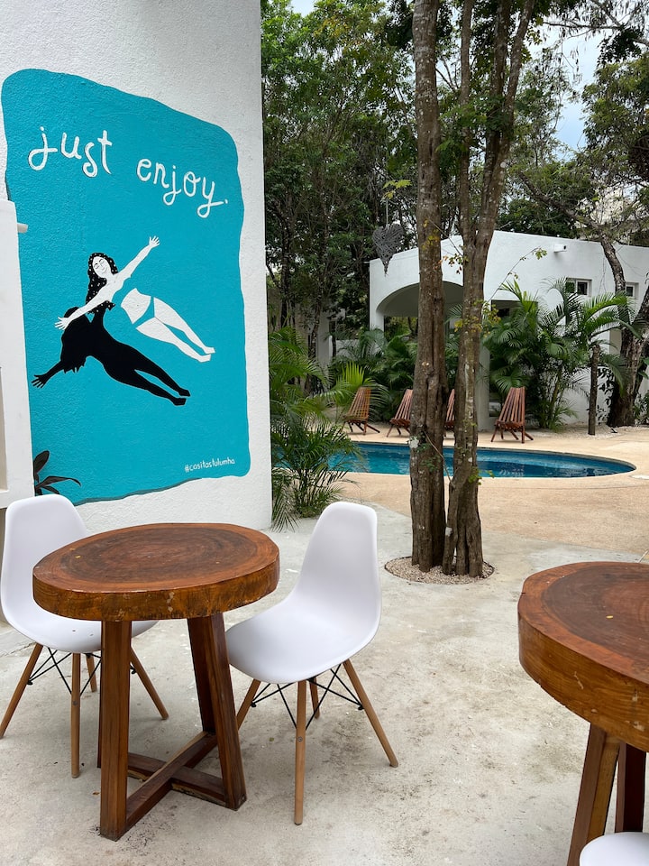 Shtëpi e bukur në Tulum · Pishinë, kopsht dhe skarë 1