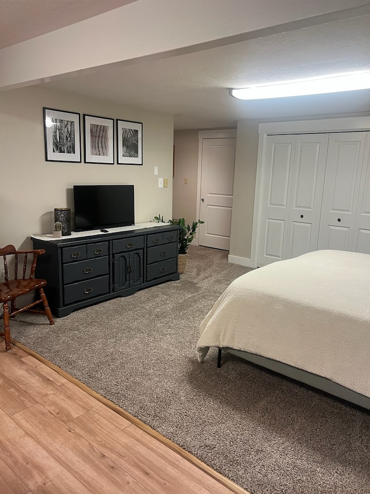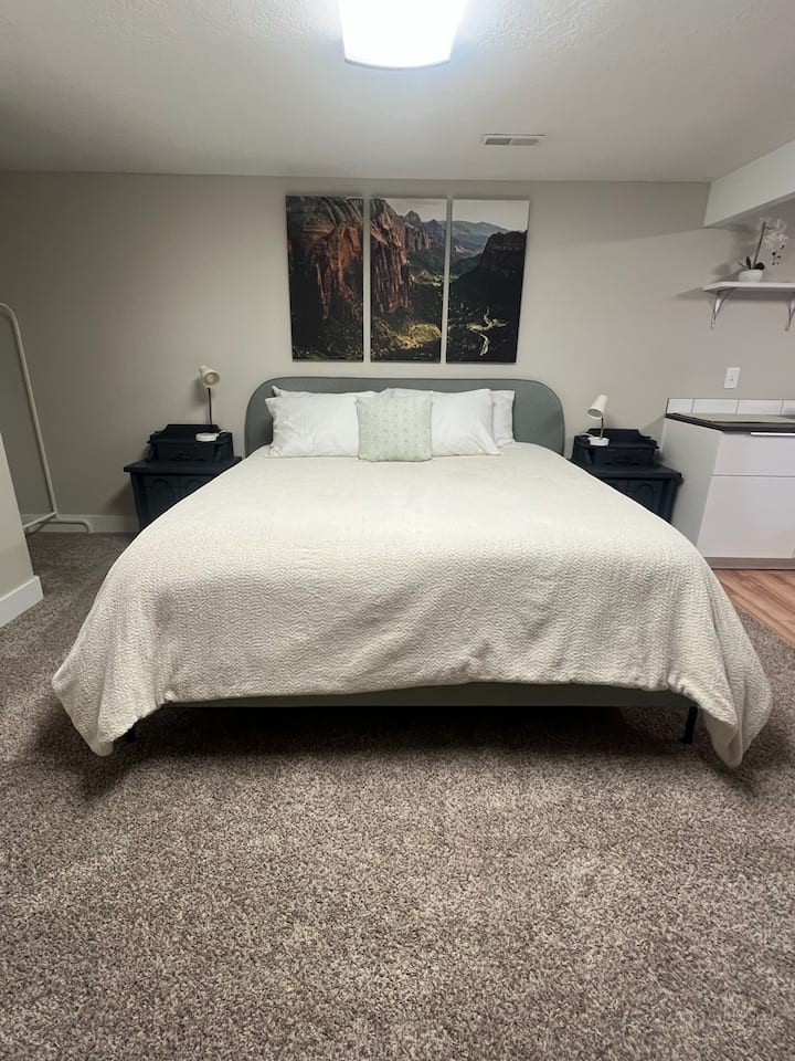 Krevat dopio "king" i çmendur dhe i rehatshëm! Apartament studio në bodrum