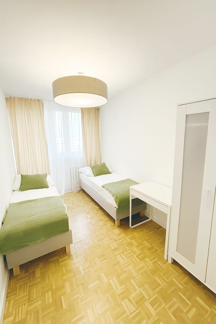 Të ftojmë në një apartament të rehatshëm në zemër të Varshavës, pranë Sheshit Grzybowski. Apartamenti është i pajisur plotësisht për të siguruar një qëndrim të rehatshëm dhe pa probleme, si për qëndrime të shkurtra ashtu edhe për qëndrime të gjata. Apartamenti ofron gjithsej 6 krevate: në dhomën e ndenjjes ka një divan dopio dhe në dy dhoma gjumi ka dy krevate tekë të pavarur që mund të kombinohen në krevate dopio të rehatshëm. Në apartament do të gjesh gjithçka që mund të të duhet çdo ditë: Lavatriçe dhe tharëse - të përsosura për qëndrime më të gjata. Tharëse rrobash - nëse preferon t'i thash gjërat tradicionalisht. Tharëse flokësh - e disponueshme në banjë. Një hekur dhe tavolinë hekurosjeje - të dobishme para takimeve ose kur del jashtë. TV - mund të relaksohesh me filmin ose serialin tënd të preferuar. Divan i rehatshëm - i përkryer për t'u çlodhur. Tavolinë me karrige - e përkryer për vakte të përbashkëta ose punë në distancë. Makineri kafeje + set kapsulash, çaj. 🌆 Pamje nga dritaret Apartamenti ofron një pamje unike të Sheshit Grzybowski dhe Pallatit të Kulturës dhe Shkencës - veçanërisht të bukur në mbrëmje kur qyteti është plot drita.