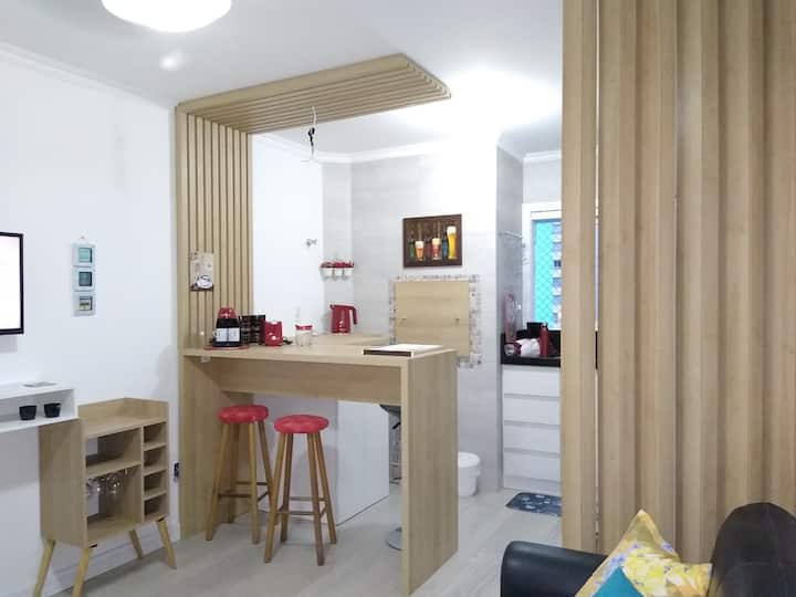 Ap.acolhedor, pranë plazhit ,1dorm.wifi dhe garazh