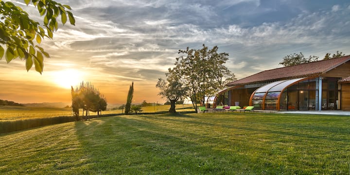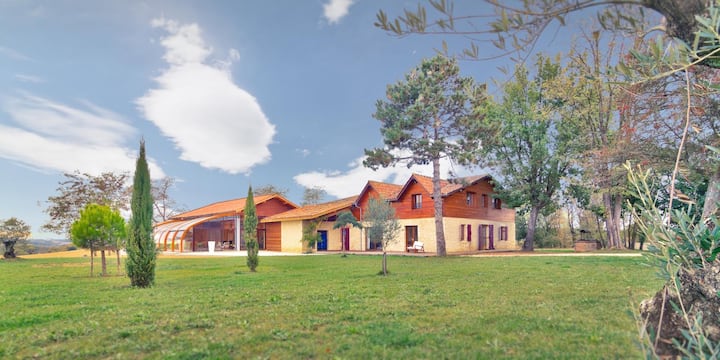 Vilë Gascon në fshat, pishinë me ngrohje dhe klimatizim