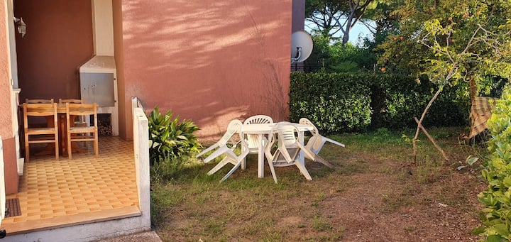 Një gur i hedhur nga deti me kopsht dhe parkim