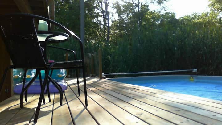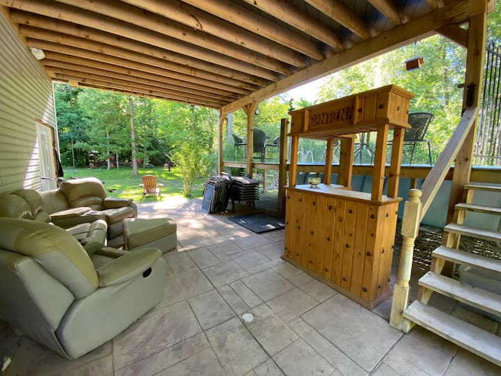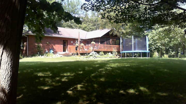 Sharmi i trashëgimisë, rehati e re qendrore për më të mirën e SW Ontario. Oaz me diell i rrethuar nga një pyll i qetë në një me natyrë brenda ose jashtë. Muzikë për veshët tuaj nga natyra ose altoparlantë të kontrolluar individualisht gjatë gjithë kohës dhe jashtë. E ngritur kati i dytë dhe kuvertë pamje nga sytë e pishinës. kuvertë e poshtme, shtigjet në pyll, pellg me ujëvarë dhe lumë në pellg/kallam të madh. 5 minuta në qytetin piktoresk të Waterford dhe pellgjet/peshkimin me varkë, Shtegun Trans Kanada. 1/4-1 orë në qytetet/plazhet/peshkimin dhe ujëvarat e Niagara