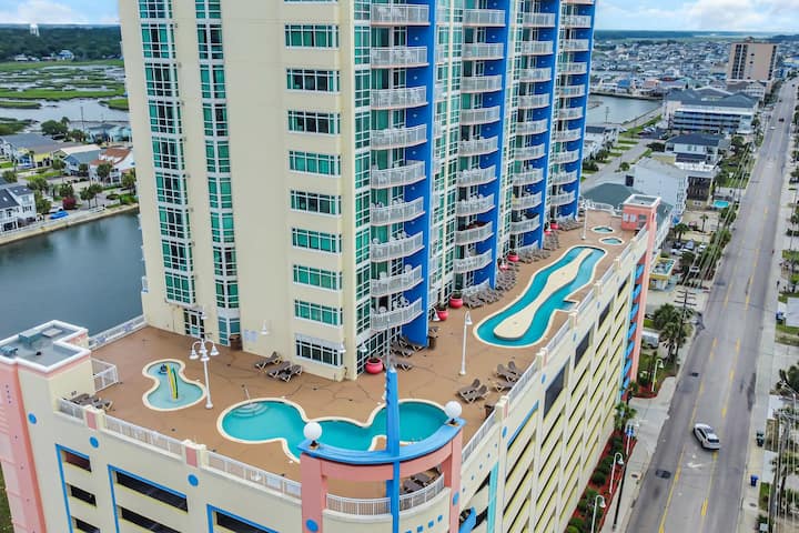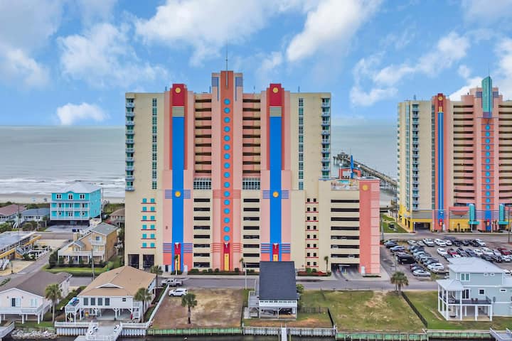 Apartament kondominial i mrekullueshëm me 3 dhoma gjumi në katin e 16-të të Prince Resort më të vlerësuar, që ndodhet në zemër të North Myrtle Beach dhe me një pamje panoramike spektakolare të oqeanit dhe një pamje të mahnitshme të Cherry Grove Pier!
