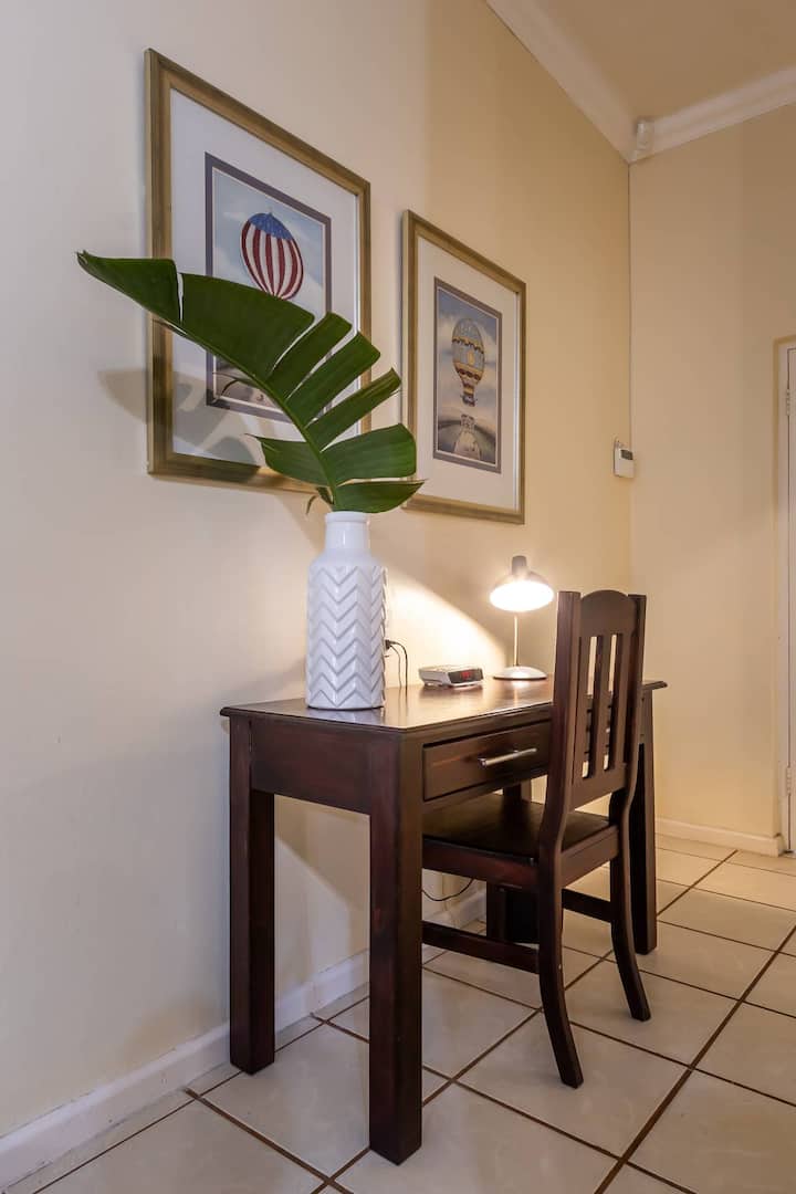 Një dhomë me wifi që është e përshtatur mirë për punë.