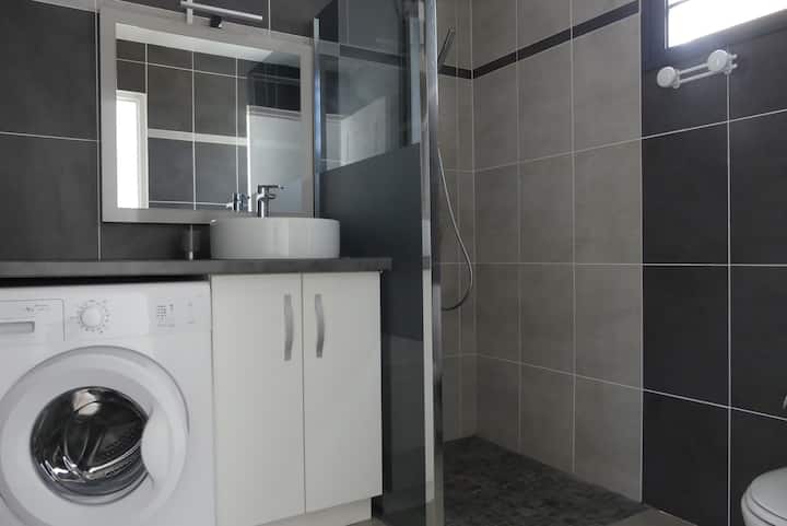 Banjë me dush dhe tualet, si dhe lavatriçe.